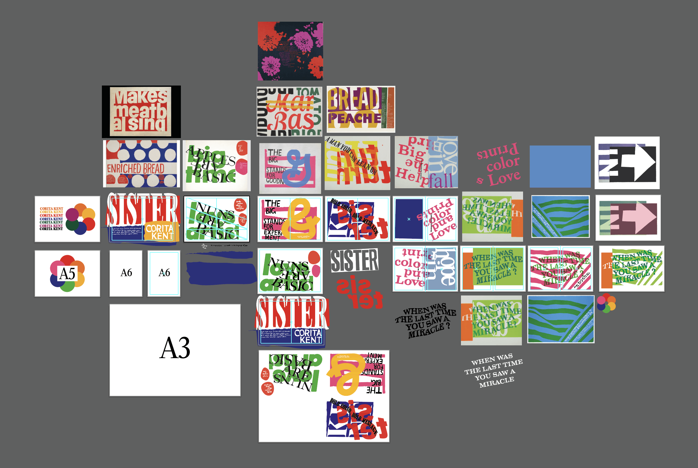 Formatted as a zine, it unfolds into a poster, echoing the dynamic and impactful mood of Corita’s creations. The design not only celebrates her artistic legacy but also serves as a modern tribute, blending historical context with contemporary design elements. Kent! invites readers to immerse themselves in the colorful, typographically rich world of Corita Kent, celebrating her contributions to art and social commentary.